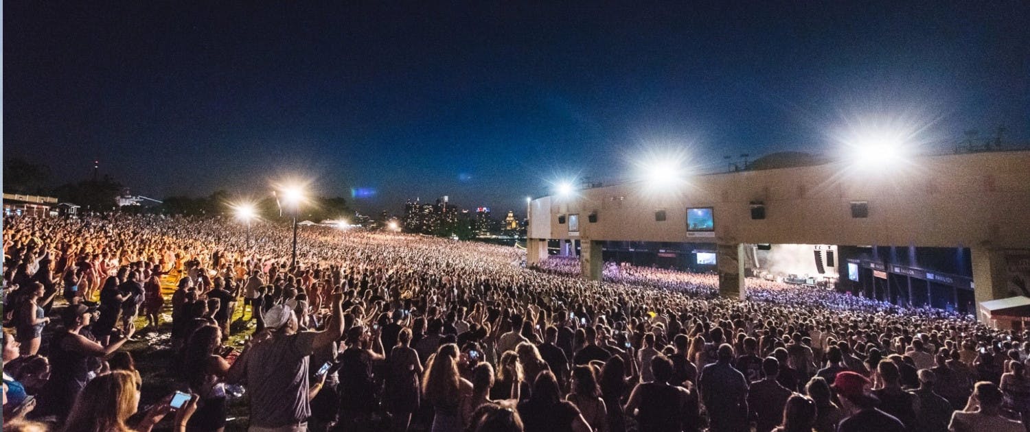 The Freedom Mortgage Pavilion, formerly known as Waterfront Music Pavilion, BB&T Pavilion, Susquehanna Bank Center, Tweeter Center, and Blockbuster-Sony Music Entertainment Centre (the E-Centre), is an outdoor amphitheater/indoor theater complex in Camden, New Jersey, located in the Camden Waterfront entertainment district on the Delaware River across from Philadelphia.