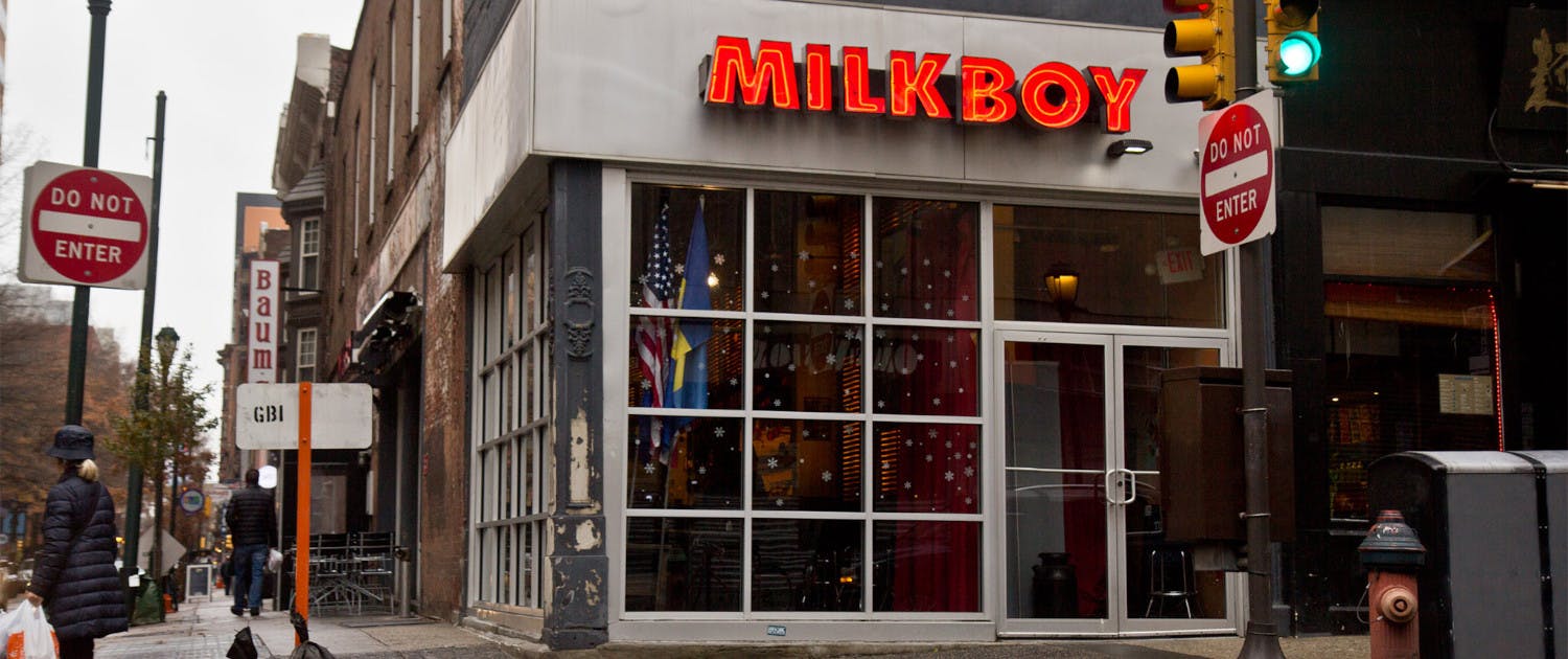 MilkBoy Philly offers an upstairs music venue that hosts an impressive lineup of local and nationally recognized musicians, two full bars and a stepped up food and beverage program. MilkBoy Philly does triple time with early AM crowds opening weekdays at 7 a.m. offering the full drink and food menu thanks to neighboring hospitals, as well as a happy hour following and the late night scene.