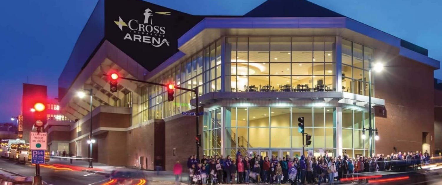 Cross Insurance Arena is a multi-purpose arena located in Portland, Maine. Built in 1977, at a cost of US$8 million, it is the home arena for the Maine Mariners of the ECHL. There are 6,206 permanent seats in the arena, and it seats up to 9,500 for concerts.