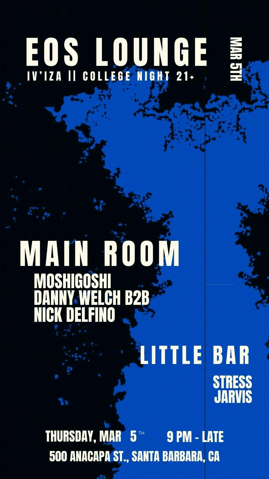 Located in the heart of Downtown Santa Barbara, EOS Lounge spreads across 5,500 square feet and features a stellar renovated stage, two spacious indoor dancefloors, three bars, and multiple intimate VIP booths. Plus, the venue packs a thumping Funktion-One sound system, which will undoubtedly pump the club full of proper tunes and good vibes all night long.