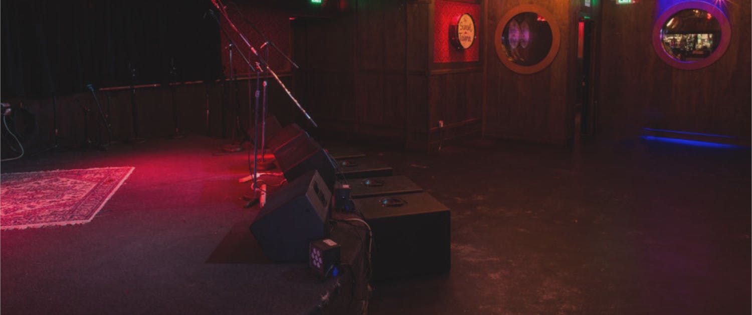 Backstage: Our world famous Dragon Room with room for equipment and seats for you and your entourage. Locking storage room available by request.